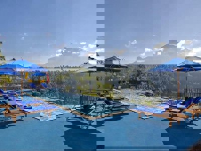 Het hotel bevindt zich tegen een achtergrond van rijstterrassen en heeft een panoramisch uitzicht op de omliggende valleien en de Agung vulkaan. Iedere kamer beschikt over een terras, zithoek en klamboe. Ook is er een eigen badkamer aanwezig. Het hotel heeft een groot buitenzwembad en een buitenrestaurant. Het restaurant biedt uitzicht op de vulkaan en kun je zowel Aziatische als Europese gerechten bestellen. Daarnaast kan je genieten van verschillende spa behandelingen die door een therapeut worden gegeven.