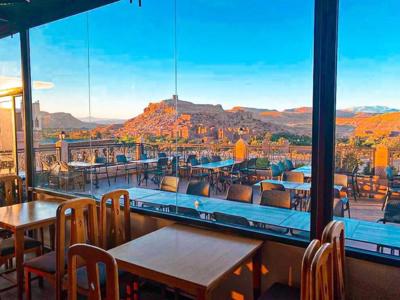 Op een terras met een mooi uitzicht op de kasbah van Aït Benhaddou ligt dit comfortabele hotel. De kamers zijn ruim met gratis Wifi en een eigen badkamer. Er is een zwembad, een zonneterras en een aangename tuin. Het restaurant serveert Marokkaanse en Afrikaanse specialiteiten.