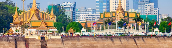 Phnom Penh is de hoofdstad van Cambodja en is gesitueerd aan de samenvloeiing van de rivieren de Mekong en de Tonle Sap. Deze stad is een fascinerende mix van traditionele Khmer-cultuur en moderne dynamiek. Onmisbare bezienswaardigheden zijn het Koninklijk Paleis, met zijn schitterende Zilveren Pagode, en het indrukwekkende Nationaal Museum. Voor geschiedenisliefhebbers biedt Tuol Sleng Genocide Museum een somber, maar essentieel inzicht in het recente verleden. Daarnaast is de lokale keuken een smaakvolle ontdekkingstocht waard. Phnom Penh is een aantrekkelijke stad als je op zoek bent naar culturele diepgang en authentieke stedelijke ervaringen.