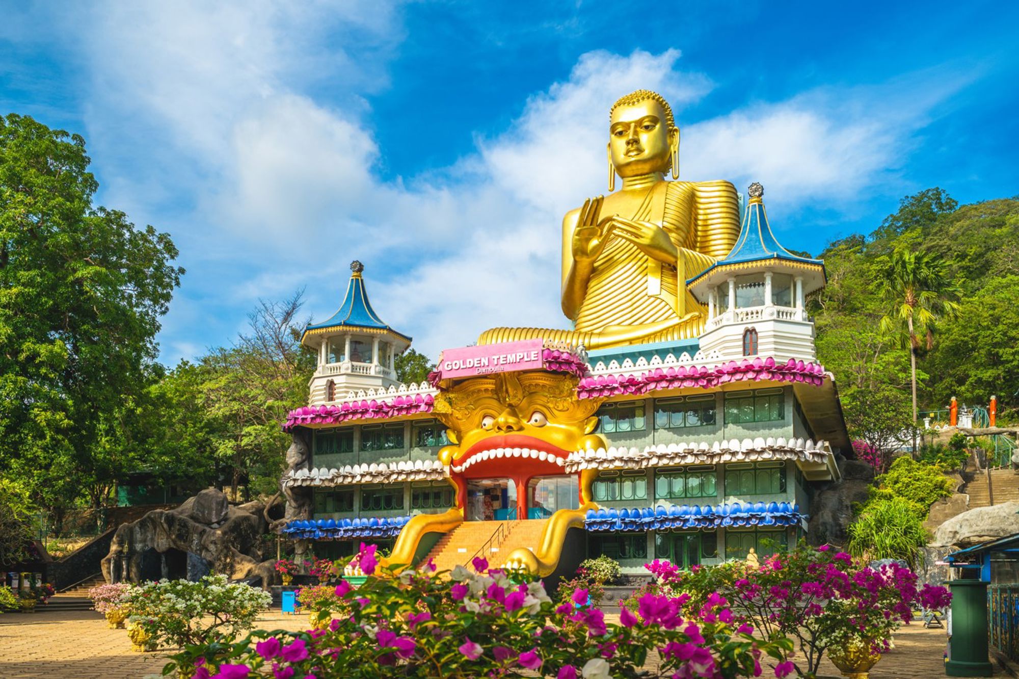 In het centrale deel van Sri Lanka bevindt zich de stad Dambulla, die beroemd is om zijn rijke historische erfgoed. De geschiedenis ervan gaat meer dan 2000 jaar terug toen de grotten in de regio als onderkomen dienden voor boeddhistische monniken tijdens hun meditatietochten. Dambulla's grottempelcomplex, ook bekend als het Gouden Tempel van Dambulla, is het grootste en best bewaarde grottempelcomplex in Sri Lanka. Dit complex huisvest een reeks van vijf heilige grotten met honderden standbeelden van Boeddha en muurschilderingen die belangrijke gebeurtenissen uit het leven van Boeddha weergeven. De tempels werden in de eerste eeuw v.Chr. gevestigd toen Koning Valagamba (ook wel Vattagamani Abhaya genoemd), na een periode van ballingschap, de macht herwon en besloot deze schuilplaatsen te transformeren tot plekken van aanbidding. Door de eeuwen heen hebben verschillende koningen bijgedragen aan de uitbreiding en verfraaiing van de tempels, wat leidde tot de rijke culturele tapestrie die nu te bewonderen is. Deze plaats is niet alleen een belangrijk boeddhistisch heiligdom maar vormt ook samen met omliggende gebieden het culturele driehoek van Sri Lanka en staat sinds 1991 op UNESCO's Werelderfgoedlijst.