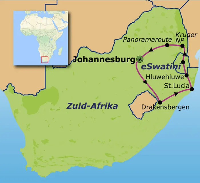 Familiereis Zuid-Afrika en eSwatini - kort