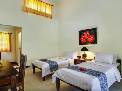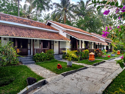Dit hotel heeft een zeer mooie locatie direct aan zee. De kamers hebben een Balinese stijl met een eigen badkamer. Er is een heerlijk buitenzwembad aanwezig om lekker in af te koelen. Daarnaast is er een restaurant aanwezig en een traditionele massageservice aan het strand. Voor de kinderen is er een speelplaats.