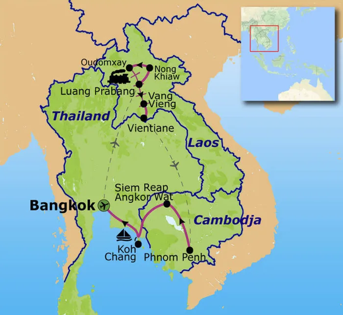 Tijdens de familiereis Indochina ontdek je Thailand, Laos en Cambodja. Dit is een bijzondere en zeer afwisselende rondreis. Tijdens de reis voor het hele gezin overnachten we in hotels die variëren van eenvoudig tot luxueus. We hebben de beschikking over een eigen bus, zodat we kunnen stoppen waar we willen. Er worden meerdere boottochten gemaakt op de Nam Ou Rivier in het noorden van Laos en met de trein reizen we door naar Vang Vieng. Om tijd te besparen vliegen we van Vientiane naar Phnom Penh. We sluiten de reis tropisch af met een heerlijk verblijf aan het strand van Koh Chang.