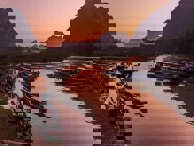 In de middag varen we terug naar Ban Muang Ngoi hier kunnen we genieten van een heerlijke lunch. Voor de liefhebbers is er tijd om een kopje koffie te drinken voordat we beginnen aan een kleine trekking door het prachtige landschap van rijstvelden. Hier nemen we een kijkje in een schuilkelder die gebruikt werd tijdens de Indochina oorlog. Vanuit Muang Ngoi varen we terug naar Nong Khiaw tijdens een prachtige zonsondergang.