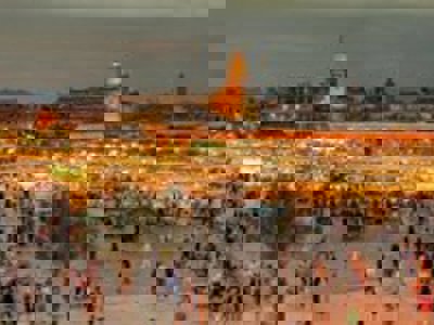 Na de fietstocht stoppen we bij het Djemaa el-Fna plein, waar je de mogelijkheid hebt om een hapje en een drankje te halen. In de namiddag heb je nog wat tijd om je op te frissen, voordat we aan boord stappen in de nachttrein naar onze volgende bestemming; Tanger.