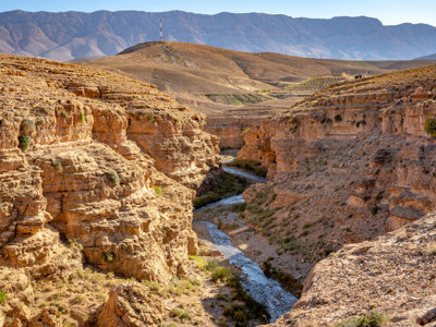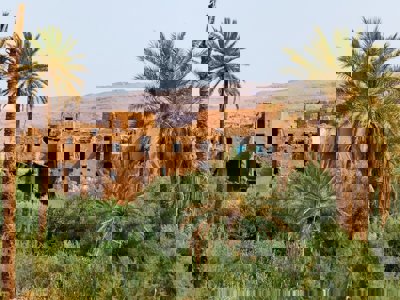Vandaag staat er een lange reisdag richting de woestijn op het programma. Met de bus rijden we via de Tizi n’Telghemt Pass en vanaf daar stappen we op de fiets om door de bergen af te dalen. We maken een koffiestop in het dorp Er-Rich en vervolgen onze weg op de fiets door de Ziz-vallei, een zigzaggende kloof waar de rivier de Ziz doorheen stroomt. Onderweg passeren we de historische Zaabal-tunnel. Daarna stappen we weer in de bus en rijden we verder langs Erfoud, bekend als de poort naar de Sahara en filmlocatie van onder andere The Mummy en James Bond Spectre.