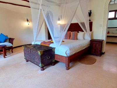 Dit hotel ligt op slechts twee minuten afstand veerbootterminal van Zanzibar en direct gelegen aan het strand. De kamers zijn ligt ingericht in Zanzibar-stijl. De kamers beschikken over airconditioning, zithoek, klamboe boven het bed, Wifi en eigen badkamer. Daarnaast beschikt het hotel over een restaurant die gerechten van een à-la-cartemenu serveert en een buffet. Je kan zowel ontspannen op het terras, in het zwembad of heerlijk in de hamam.