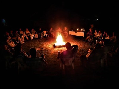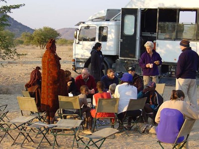 Op gepaste afstand van een Himba-dorp zullen we onze tenten opzetten. Er zijn geen voorzieningen, maar de interactie met de Himba en de prachtige omgeving maken dit meer dan goed. Waar het bezoek aan het dorp zelf wat geforceerd kan overkomen, is het potje voetbal aan het eind van de middag met de kinderen of de Himba-dames die bij ons kampvuur komen zitten ongedwongen en waar het bij deze overnachting om draait.