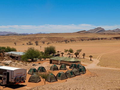 Deze campsite is gelegen aan de entree van Sesriem en de Sossusvlei. Voor overland trucks is er een groot veld waar de tenten opgezet worden. Geniet van het prachtige uitzicht of koel af in het zwembad. In de avond is het tijd voor gezelligheid bij het kampvuur. Er zijn gedeelde sanitaire voorzieningen.