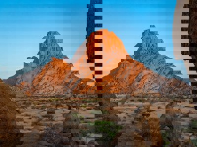 In de morgen reizen we naar Spitzkoppe, onderweg zul je zien dat het landschap leger en leger wordt. We rijden via Spitzkoppe, een granieten eilandberg in het Namib-Naukluft Nationaal Park. De berg doet zijn naam eer aan, met 1784m steekt de spitse top hoog boven het landschap uit. Als er nog tijd is kan je een wandeling maken naar de rotstekeningen die hier nog te zien zijn.