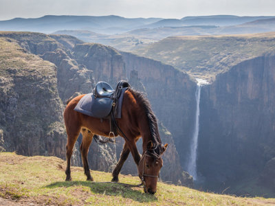 Je kan ervoor kiezen om te gaan paardrijden. Deze tocht voert je door steile kloven en valleien naar de unieke Botsoela waterval. Je laat de paarden achter op de top van de waterval, waarna je via een korte wandeling naar de voet van de waterval gaat.