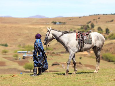 Zodra we Lesotho binnen rijden lijkt het alsof de tijd heeft stil gestaan en is het duidelijk dat we ons in een ander land bevinden: het land van de Basotho. Dit is een trots volk die zich kleedt in kleurige dekens en wollen mutsen en dat zich vooral te voet of te paard verplaatst. We verlaten de ‘hoofdweg’ en gaan de bergen in. Tegen de verre heuvels aangeplakt liggen kleine dorpjes.