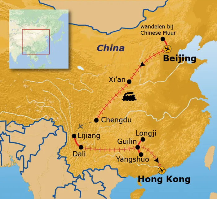 Tijdens deze avontuurlijke rondreis door China bezoek je naast imposante bouwwerken, mensenmassa's en miljoenensteden, ook overweldigende natuur èn lekker eten. Per trein, bus, vliegtuig, fiets en te voet doorkruis je fascinerend China. Je wandelt over de Chinese Muur en reist per trein via Xi'an naar Chengdu, waar je kennis kunt maken met de zeldzame en geliefde reuzenpanda. Deze rondreis in China sluiten we af in het bruisende Hongkong.