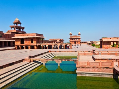 Fatehpur Sikri is de indrukwekkende, maar verlaten hoofdstad van het Mogul Rijk tussen 1570 en 1586. Akbar bouwde deze stad om de geboorte van zijn zoon en toekomstige troonopvolger, keizer Jahangir, te vieren. Hoewel Akbar naar verluidt analfabeet was, had hij grote belangstelling voor kunst en architectuur; Fatehpur Sikri is een van zijn meesterwerken, maar moest worden verlaten wegens een gebrek aan water.