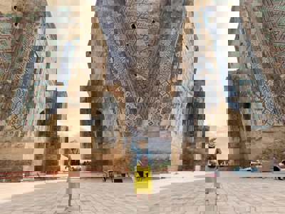 We duiken vandaag verder in de geschiedenis en reizen af naar Shakhrisabz, de geboorteplaats van Timoer. Om daar te komen wacht ons eerst een mooie rit dwars door de Zarafshanbergen. Eenmaal aangekomen zullen we een bezoek brengen zijn paleis, de Ak-Sarai, en staat er ook een groot standbeeld ter ere van Timoer. Naast de enorme toegangspoort, die je kunt beklimmen voor een fraai uitzicht (de rest van het paleis is helaas verloren gegaan), kun je ook enkele madrasahs en de bekende Kok-Gumbaz-moskee bezoeken.