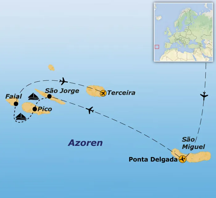 Tijdens deze reis verken je de Azoriaanse eilanden São Miguel, São Jorge, Pico, Faial en Terceira. Ontdek de azuurblauwe meren, vulkanische bronnen, heldere watervallen en maak kennis met het lokale leven. Uiteraard is er ook voldoende tijd om door de gezellige steden te slenteren, te genieten van de lokale keuken en een terrasje te pakken. Deze Azorenreis zul je niet snel vergeten!