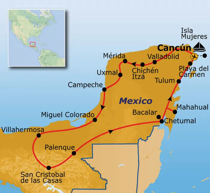 Tijdens deze avontuurlijke rondreis door Mexico bezoek je allerlei prachtige ruïnes, ontdek je de azuurblauwe zeeën en wandel je door de ongerepte groene jungle. Ook bezoek je oude dorpjes waar afstammelingen van de Mayas wonen met sfeervolle pleinen en gezellige eetkraampjes. In Bacalar, Mahahual én op het tropische eilandje Isla Mujeres kun je tenslotte heerlijk ontspannen terwijl je op het strand ligt. Een bijzondere reis door het voormalige rijk van de Maya's die zowel fascinerend als afwisselend is.
