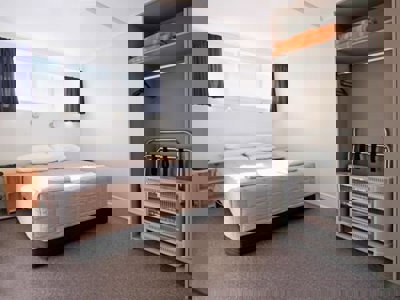 Je verblijft in een 3 kamer appartement met 2 slaapkamers of je verblijft in de Logde Queen Room. Bij beide kamers deel je de faciliteiten, zoals de badkamer.