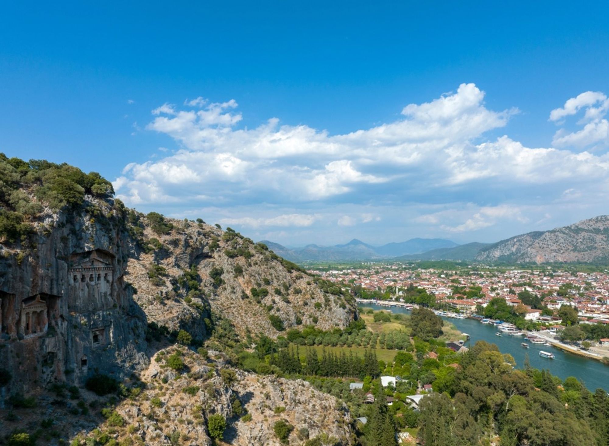 - Bekijk de rotstombes: Een niet te missen spectaculair zicht zijn de enigmatische Lycische rotstombes, die uitkijken over de rivier de Dalyan.